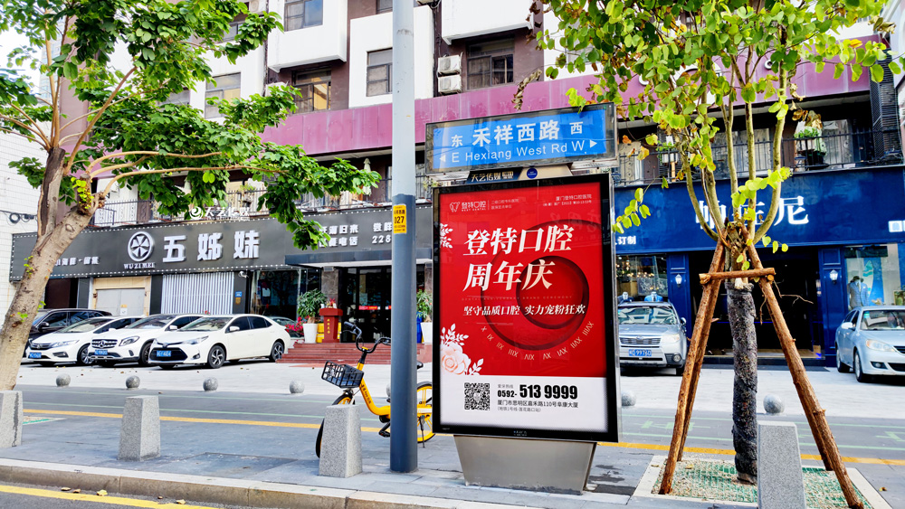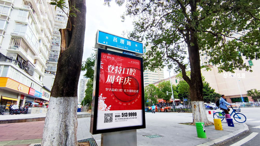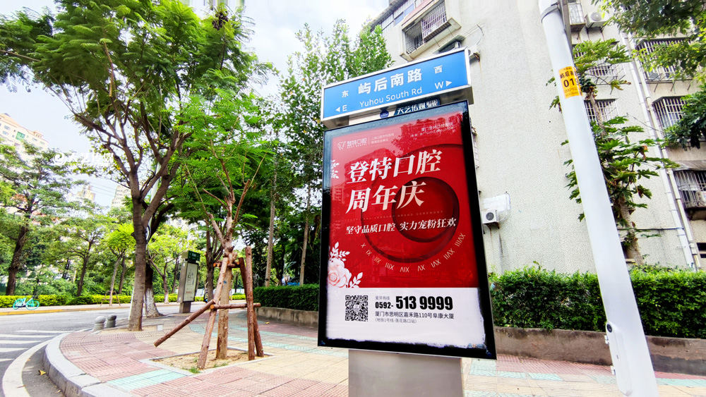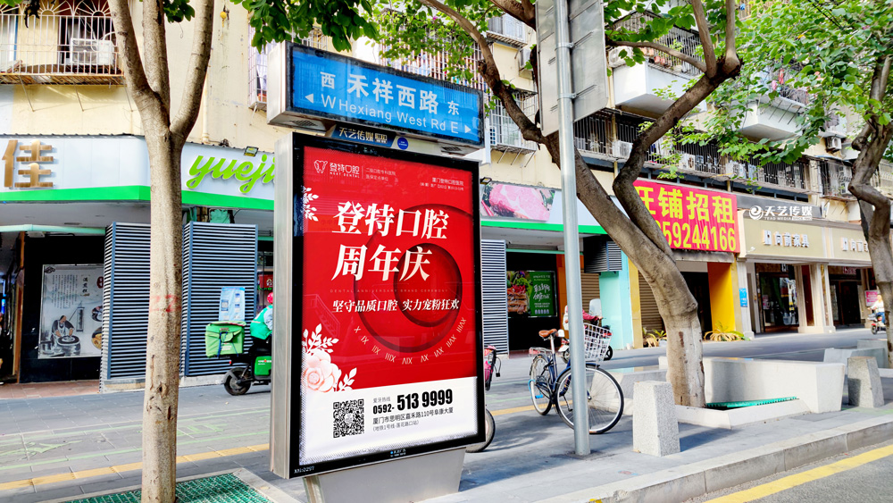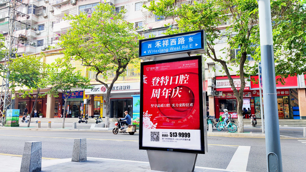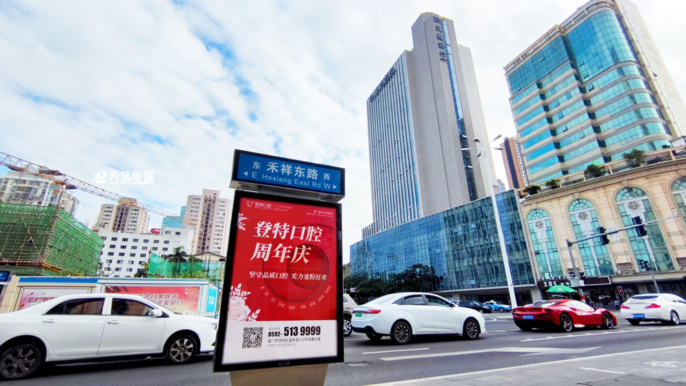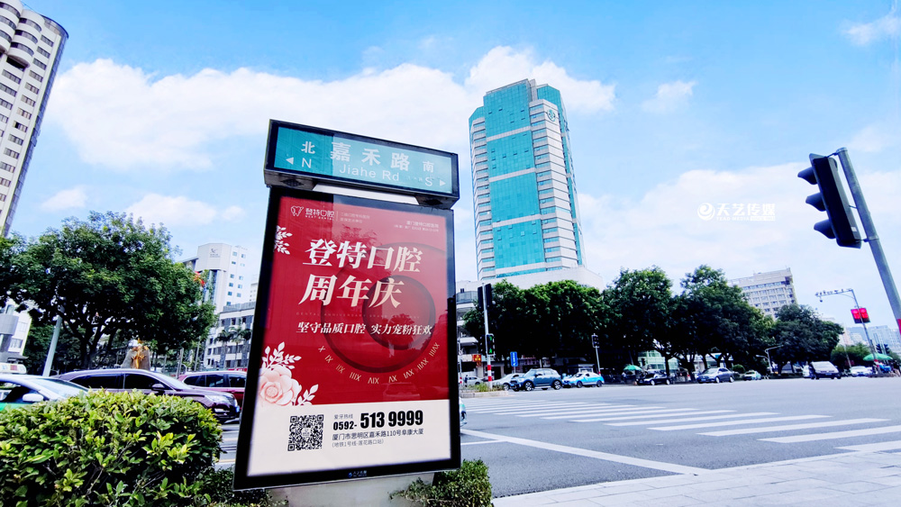 同時(shí),廈門(mén)登特口腔繼續(xù)與廈門(mén)天藝傳媒合作,投放鷺島全城超200座城市路名牌,覆蓋島內(nèi)各大交通主干道(如嘉禾路、禾祥西路、禾祥東路)、核心商圈、商務(wù)區(qū)寫(xiě)字樓林立區(qū)、人流車(chē)流覆蓋密集區(qū)域。