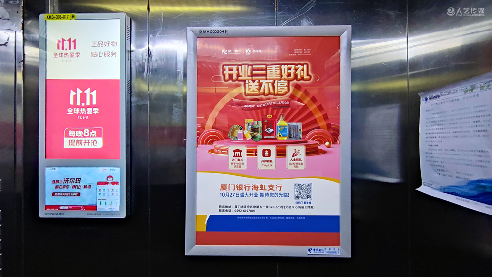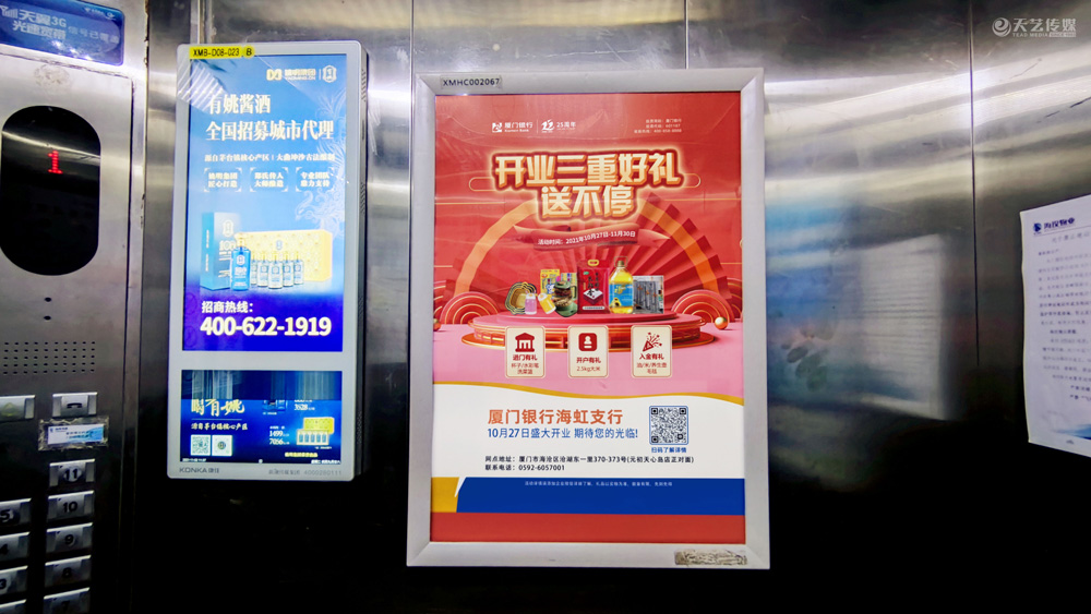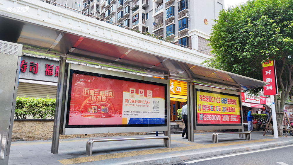 此次廈門(mén)銀行海虹支行選擇與天藝傳媒進(jìn)行戶外媒體投放的合作,投放海滄區(qū)(以海滄的生活區(qū)、海虹支行周邊區(qū)域?yàn)橹?的多個(gè)戶外廣告媒體,包括公交候車(chē)亭媒體、電梯框架廣告、社區(qū)公告欄媒體及社區(qū)出入口的道閘媒體等。