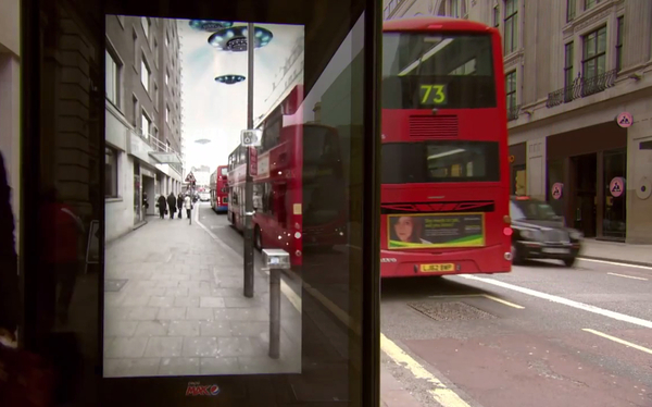 數(shù)字戶外,創(chuàng)意無(wú)限。比方說(shuō),百事在倫敦的候車(chē)亭屏幕上做過(guò)的AR廣告,讓等車(chē)的人可以看到UFO、飛人、老虎等動(dòng)態(tài)畫(huà)面,看起來(lái)就像是真的一樣,如果事先沒(méi)有準(zhǔn)備的話,人可能會(huì)被嚇到。