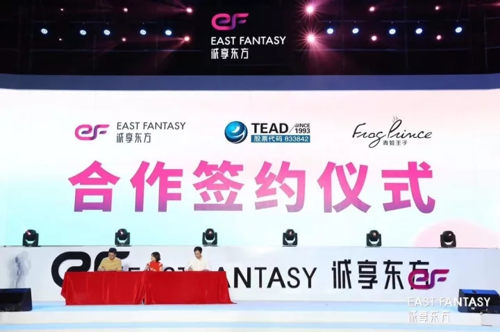 2017年10月21日,在誠享東方掛牌慶典晚會上,天藝傳媒攜手知名美妝移動電商——誠享東方,及國內領先日化企業(yè)——青蛙王子在廈門音樂島正式舉行簽約儀式。三方將在未來共同推出以“阿巴兔”為品牌形象的兒童護理系列產品。