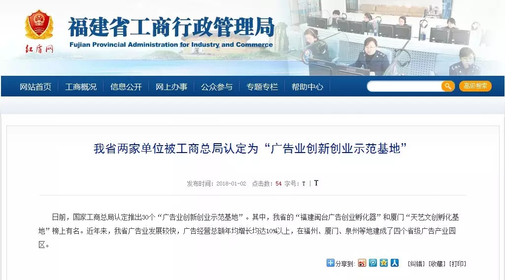 天藝傳媒獲評(píng)國(guó)家級(jí)廣告業(yè)創(chuàng)新創(chuàng)業(yè)示范基地!廈門(mén)唯一一家!